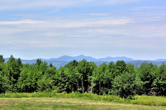 Northwest view: South Bay of Lake Memphremagog in the midground. Lake Memphremagog is behind that (it looks like a blue circle). Owl's Head Mountain in Québec is the highest peak on the side of the lake. (hdr image)